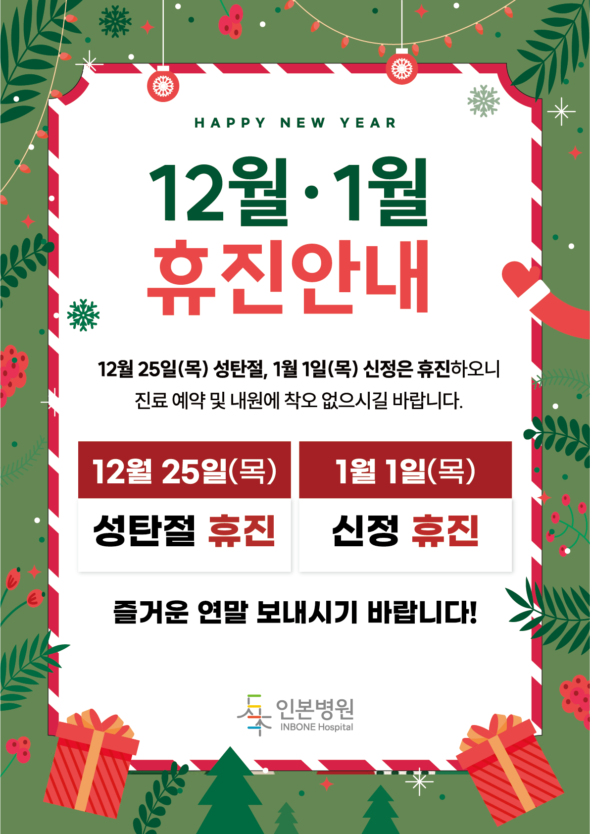 성탄절, 신정 휴진안내드립니다.